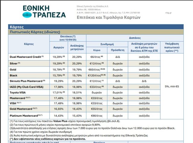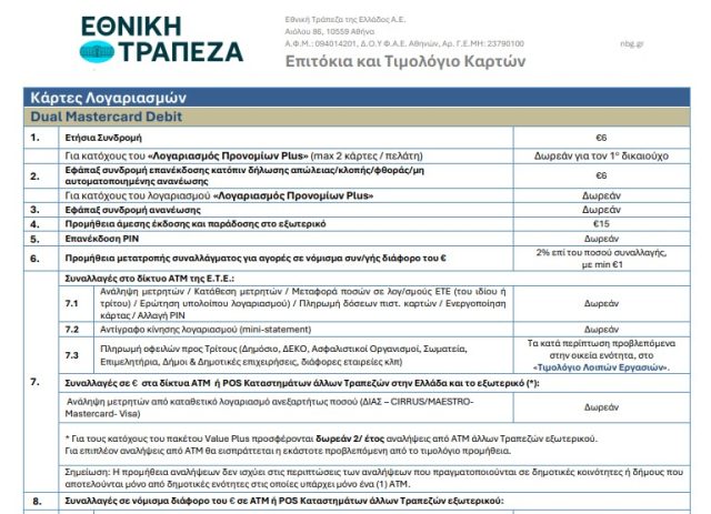 Η σχετική προμήθεια αναλύεται στο τιμολόγιο καρτών της Εθνικής Τράπεζας, το οποίο είναι διαθέσιμο για οποιονδήποτε χρήστη να το δει με τα δικά του μάτια εδώ.