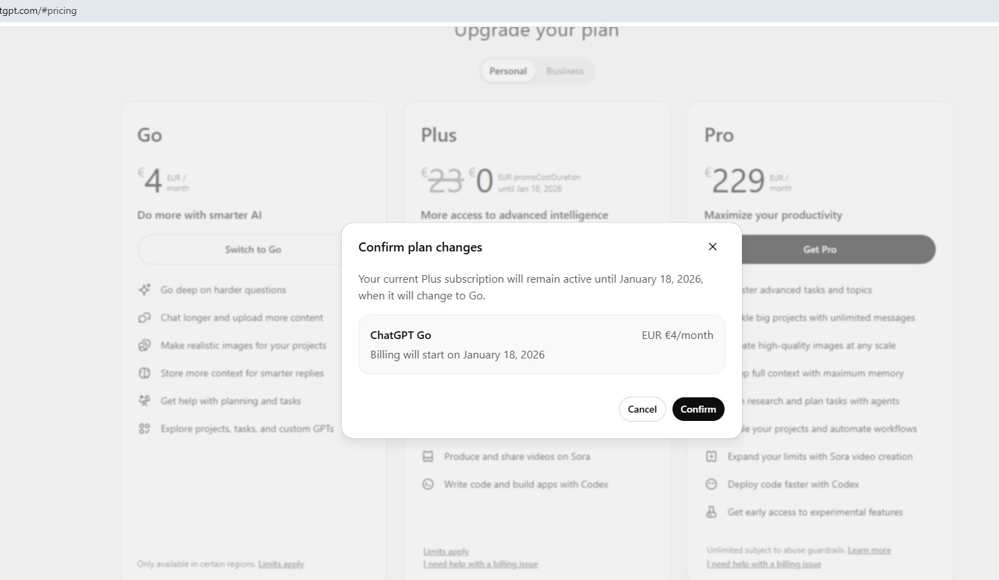 Παράλληλα, πριν από λίγη ώρα, εντοπίσαμε να γίνεται διαθέσιμο και το ChatGPT Go και στην Ελλάδα, η πιο οικονομική συνδρομή του ChatGPT. Πιο συγκεκριμένα, αυτή την περίοδο εκμεταλλευόμασταν το trial της premium έκδοσης των 23 ευρώ και μας εμφάνισε διαθέσιμο το πακέτο του ChatGPT Go με μόλις 4 ευρώ κάθε μήνα, και φυσικά αλλάξαμε άμεσα.