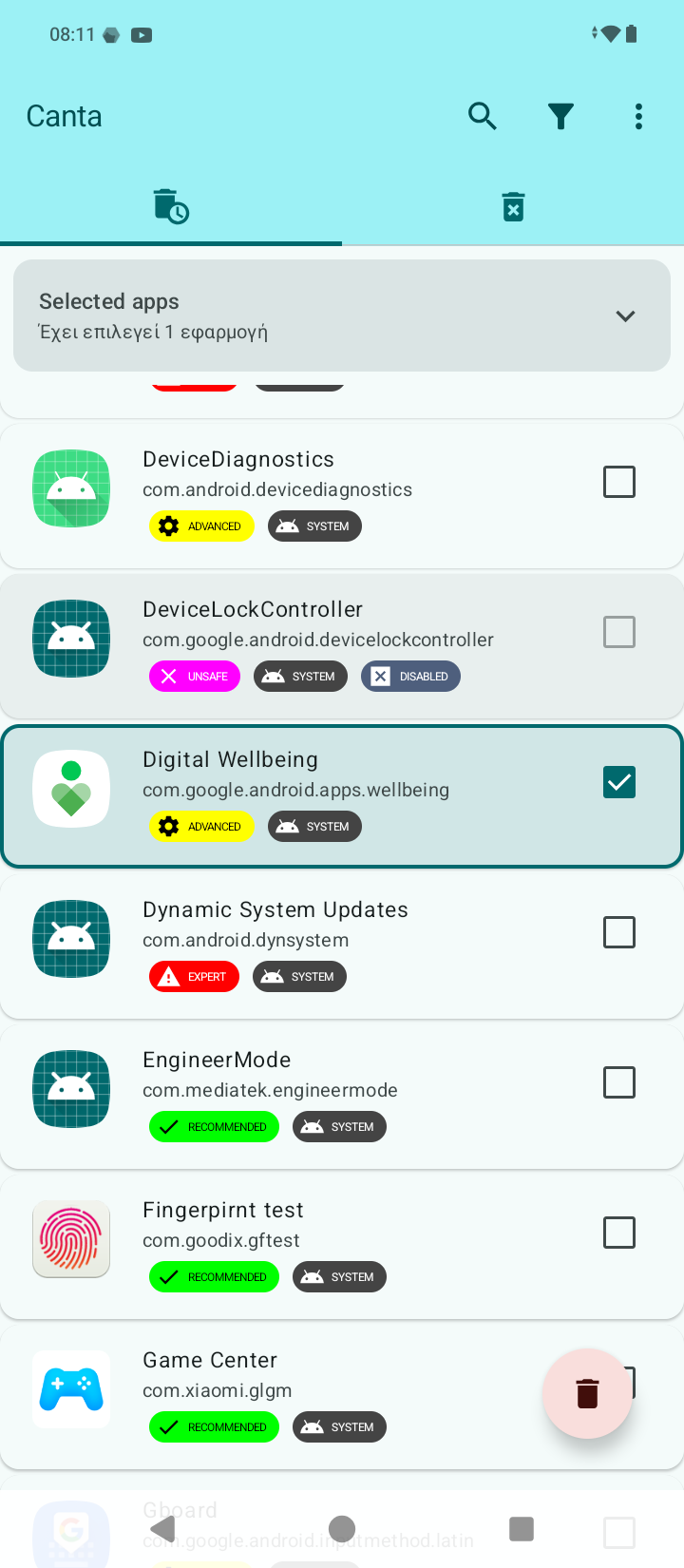 Ένα από τα καλά στοιχεία του Canta είναι το γεγονός ότι σου δείχνει ποιες εφαρμογές είναι safe να αφαιρέσεις, ποιες είναι unsafe, κάτι το οποίο θα πρέπει να κάνεις με δική σου ευθύνη. Αξίζει να σημειώσουμε ότι οι εφαρμογές θα επαναφερθούν στο επόμενο factory reset που θα κάνεις. Δηλαδή απενεργοποιούνται για τον τρέχοντα χρήστη.