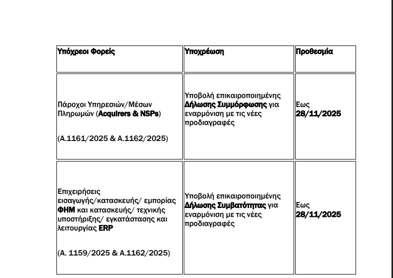Προθεσμίες Συμμόρφωσης για τους Φορείς