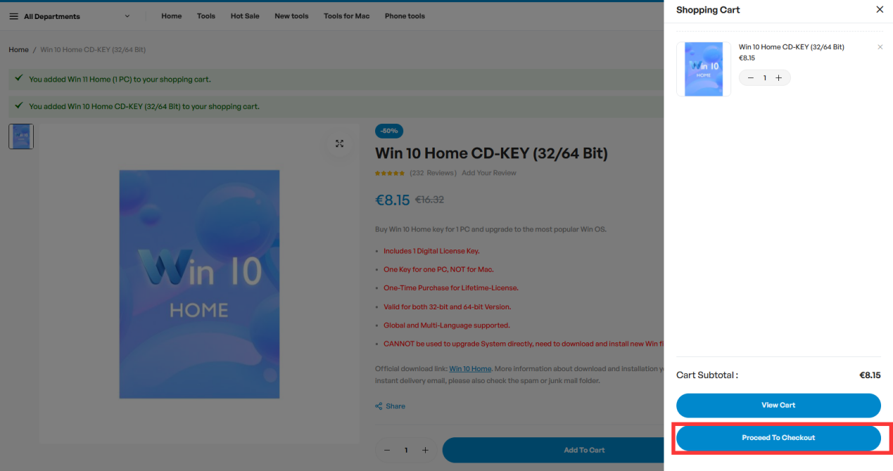 - Win 10 Home Key– 8.15€