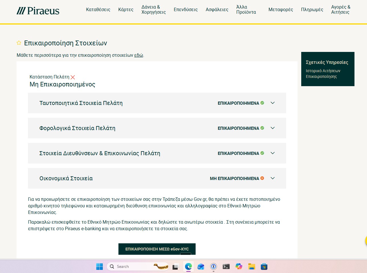 Πιο συγκεκριμένα η Τράπεζα Πειραιώς μας ζητά να προβούμε σε επικαιροποίηση στοιχείων που αφορούν το εισόδημά μας, είτε μέσω eGov είτε με αυτόματο ανέβασμα των απαραίτητων εγγράφων στο e-Banking.