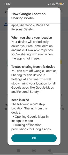 - Κάτι τέτοιο θα σταματήσει τον διαμοιρασμό της τοποθεσίας σε όλα τα Google Apps, όπως το Google Maps και το Personal Safety.