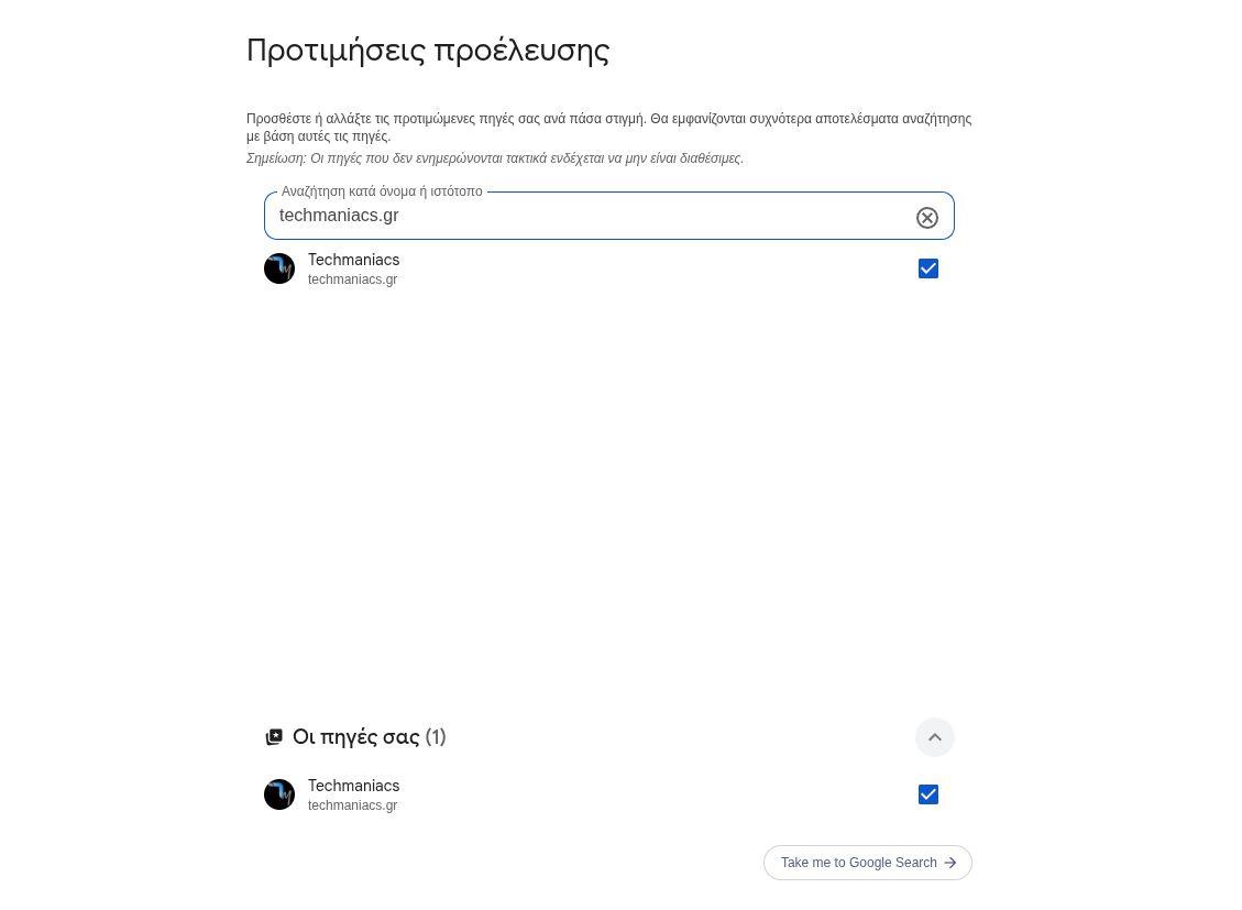 Εκτός βέβαια αν κάνεις τη σχετική επιλογή να μην εμφανίζεται περιεχόμενο από τη συγκεκριμένη ιστοσελίδα. Αυτό που θέλω να πω εν ολίγοις είναι ότι αυτή τη στιγμή αν αγαπάς το techmaniacs.gr και την προσπάθεια που γίνεται, καλό είναι να κάνεις ένα κλικ εδώ και να μας ορίσεις ως προτιμώμενη πηγή.