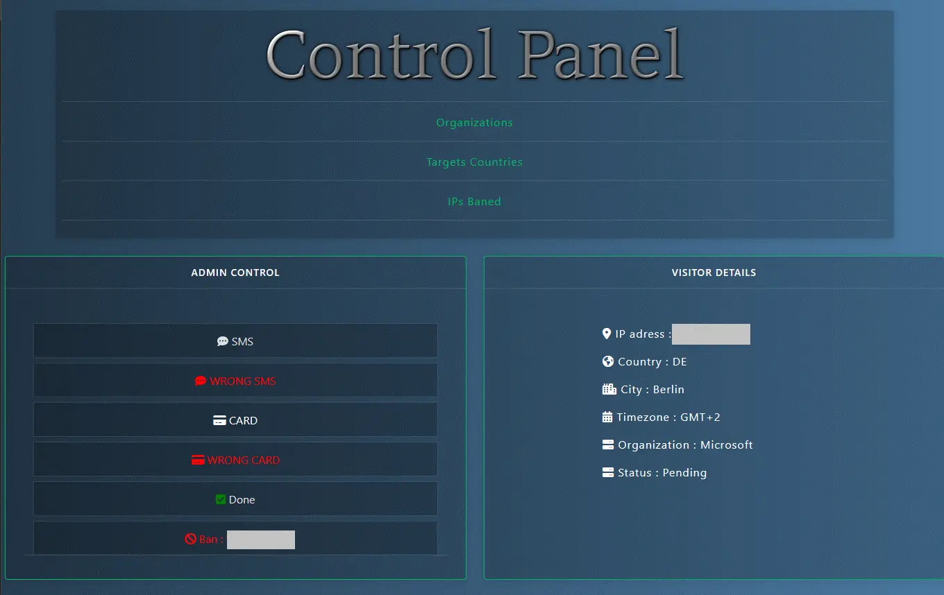 Παράδειγμα ενός πίνακα διαχείρισης μέσω του οποίου ελέγχονται τα κλεμμένα δεδομένα