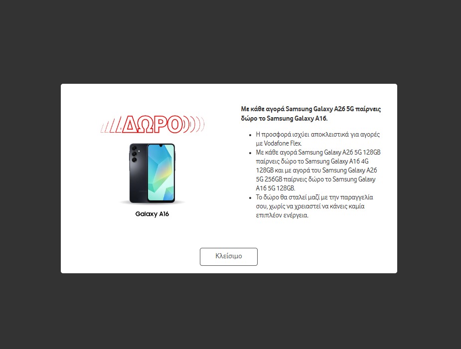 Η προσφορά ισχύει αποκλειστικά για αγορές με Vodafone Flex.