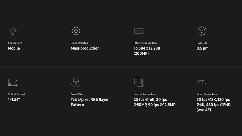 Η Samsung λέει ότι ο αισθητήρας θα είναι ικανός να τραβάει φωτογραφίες στα 7,5 fps σε πλήρη ανάλυση, 30 fps στα 50MP και 90 fps στα 12,5MP. Υποστηρίζει επίσης μορφές RAW 8-bit, 10-bit, 12-bit και 14-bit. Όσο για το βίντεο, θα πρέπει να έχετε έως και 8K@30fps, 4K@120fps και FHD@480fps χωρίς αυτόματη εστίαση.