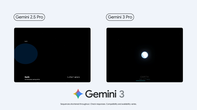 Όπως πιθανόν ήδη γνωρίζεις, ένα υποτομικό σωματίδιο είναι μικρό. Ο γαλαξίας μας, όμως, είναι πολύ μεγάλος.  Με το Gemini 3, μπορείς να δημιουργήσεις έναν τρόπο να δεις αυτές τις διαφορές.  Το μοντέλο παρουσιάζει προηγμένες δυνατότητες, επειδή μπορεί να συνθέσει διαφορετικά κομμάτια πληροφορίας και να ακολουθήσει περίπλοκες δημιουργικές οδηγίες.
