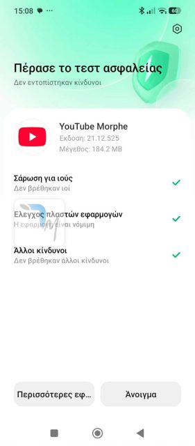 Συγκεκριμένα τη στιγμή που δοκιμάζαμε την εφαρμογή στο κινητό μας η συνιστώμενη έκδοση του YouTube είναι η 20.45.36. Αν επιλέξεις να κάνεις patch νεότερη έκδοση του YouTube μπορεί να μην δουλέψει καθώς η ομάδα έχει δοκιμάσει τα χαρακτηριστικά που βάζει το Morphy στην συγκεκριμένη έκδοση του YouTube που σου προτείνει.