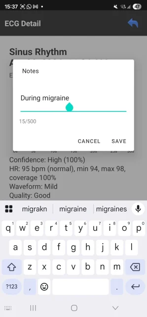 Παράλληλα, προσφέρει τη δυνατότητα δημιουργίας σημειώσεων για μια μέτρηση, ώστε να περιγράψουμε πως νιώθαμε σε μια μέτρηση, που μπορεί να φανεί πολύ χρήσιμο για καλύτερη διάγνωση από τον γιατρό μας.