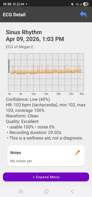 Έτσι, η εφαρμογή έχει δυνατότητα καταγραφής ηλεκτροκαρδιογραφήματος, με πολύ καλύτερη ανάλυση των αποτελεσμάτων ακόμα και από την εφαρμογή της Samsung, κάνοντας χρήση τεχνητής νοημοσύνης.