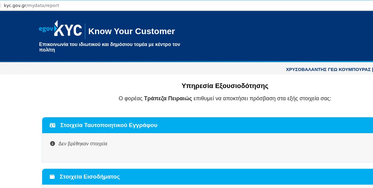 Ενώ τα στοιχεία μου είναι συμπληρωμένα όλα στο Εθνικό Μητρώο Επικοινωνίας και επιβεβαιωμένα κανονικά, αντιμετωπίζω πρόβλημα με τη διαδικασία ενημέρωσης στις τράπεζες μέσω Know Your Customer. Όταν προσπαθώ να εγγραφώ σε μια νέα εφαρμογή τράπεζας και μου ζητάει να συνδεθώ μέσω εθνικού μητρώου επικοινωνίας και το κάνω, αναφέρει ότι θα διατεθούν τα συγκεκριμένα στοιχεία, αλλά δεν εμφανίζει τον αριθμό του ταυτοποιητικού εγγράφου. Προφανώς θα πρόκειται για κάποια δυσλειτουργία, επειδή έχω αλλάξει ταυτότητα. Έχω βγάλει νέα ταυτότητα ήδη από τον Μάρτιο του 2024. Πως θα μπορούσα να λύσω το πρόβλημά μου;