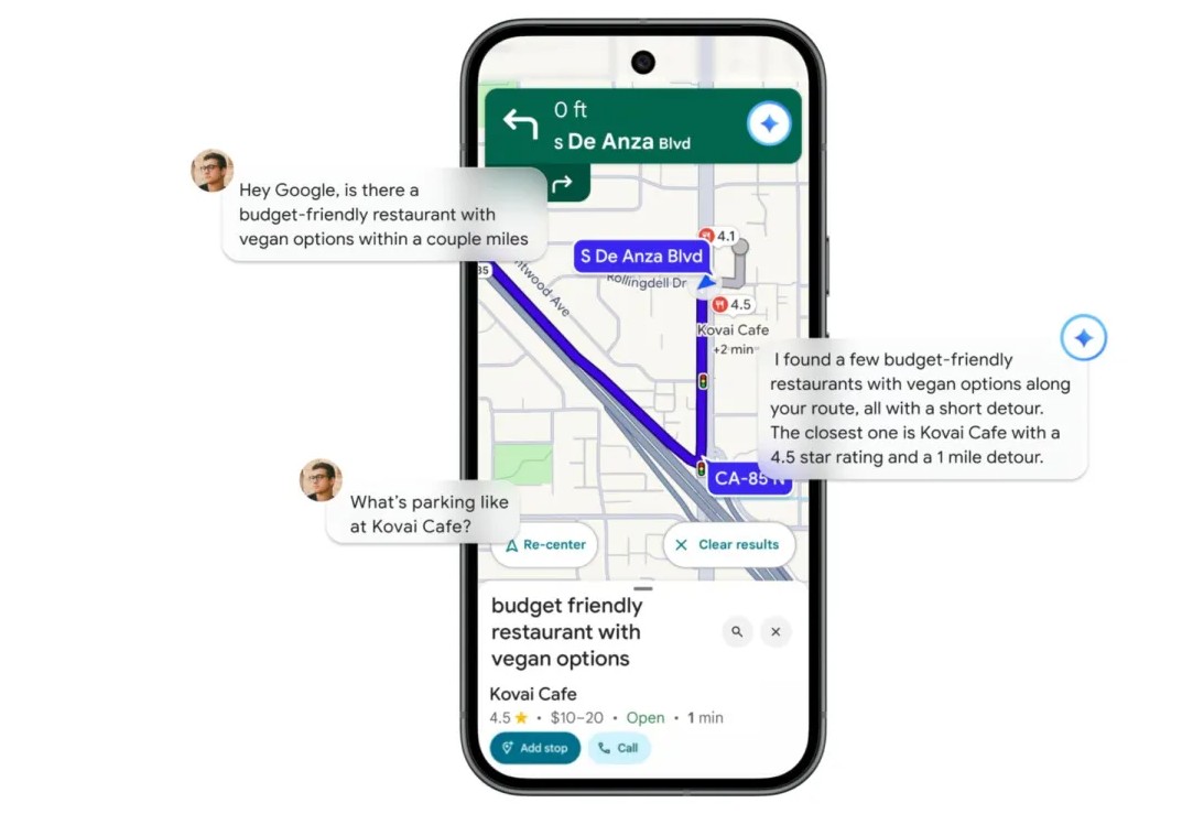 Πιο συγκεκριμένα, το Gemini αντικαθιστά πλέον την Google Assistant στην πλοήγηση του Google Maps. Πιο συγκεκριμένα, ο χρήστης πλέον θα βλέπει το Gemini στην πάνω δεξιά γωνία της εφαρμογής, όπου θα μπορεί να πιέζει σε αυτό. Και με το συνθηματικό “Hey Google”, θα μπορεί να πραγματοποιήσει ερωτήσεις σχετικά με τη διαδρομή.