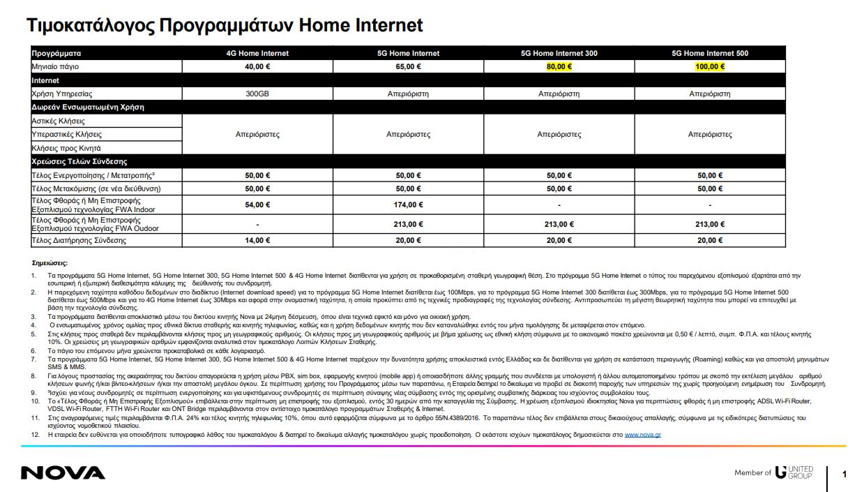 - Τα προγράμματα Nova 5G Home Internet διαφημίζονται ως απεριόριστα, αναφέρει ο τιμοκατάλογος απεριόριστη χρήση internet