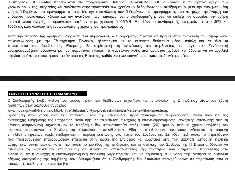 Να σημειώσουμε ότι υπάρχει όρος στους γενικούς όρους της Nova ότι για λόγους απρόσκοπτης παροχής των υπηρεσιών της ενδέχεται να προβεί σε περιορισμούς στις υπηρεσίες της.
