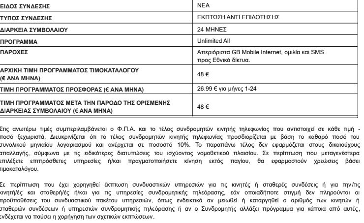 Το συμβόλαιο είναι ο χώρος όπου ο κάθε πάροχος αναλύει τους όρους του προγράμματος που θα ισχύσουν στο πρόγραμμα που επιλέγει ο πελάτη. Αν λοιπόν, το ίδιο το συμβόλαιο δεν αναφέρει το όριο δεν υπάρχει κάποιος άλλος τρόπος να γνωρίζουμε τι πραγματικά ισχύει και κανείς δεν θα μπορέσει να στο απαντήσει με έγκυρο τρόπο.