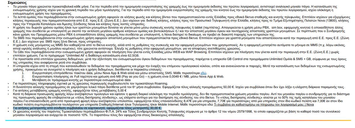 Οι όροι που περιλαμβάνουν και αναφέρουν τη χρέωση είναι διαθέσιμοι εδώ στην επίσημη σελίδα της Nova.