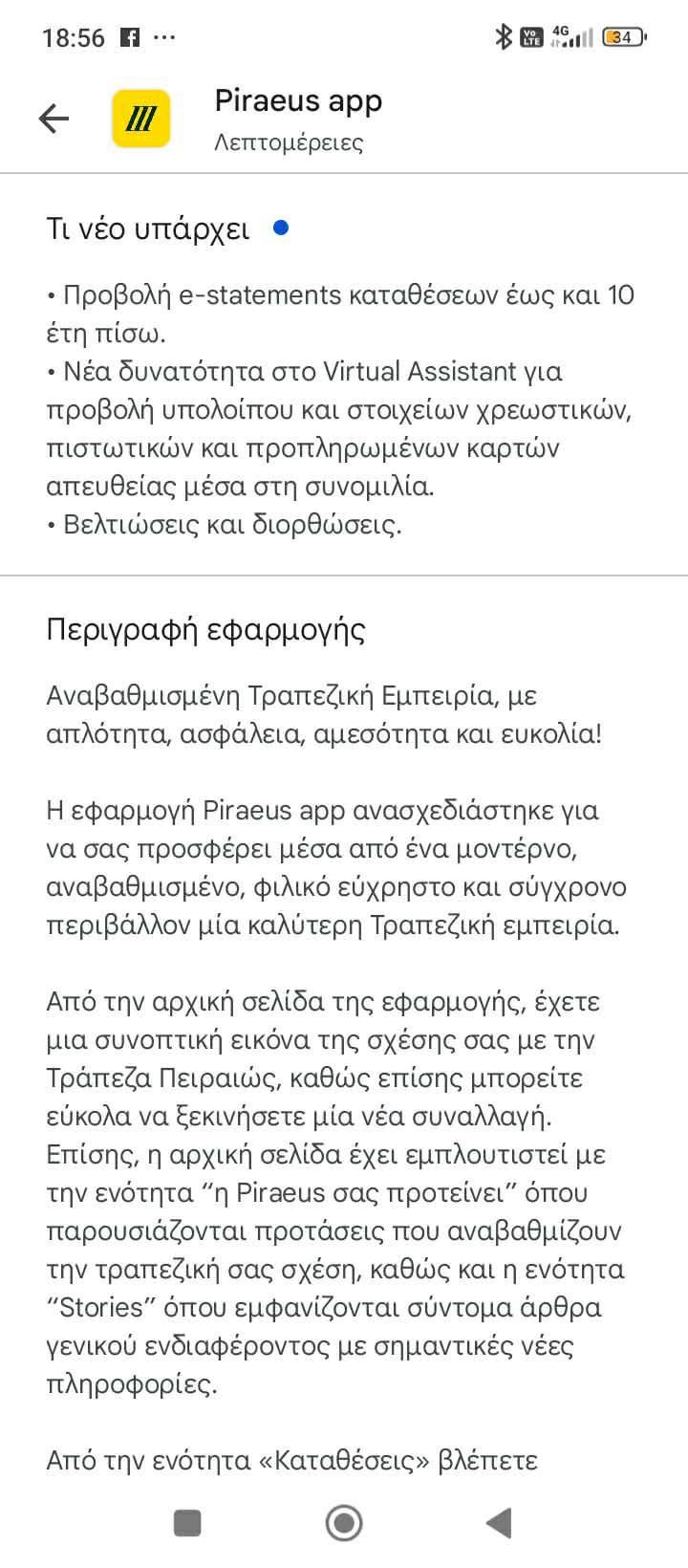 Πριν από λίγες ώρες έγινε διαθέσιμη μια νέα, σημαντική κατά την άποψή μας ενημέρωση για την εφαρμογή της Τράπεζας Πειραιώς (Piraeus app) σε κινητά.. Σύμφωνα με τις σημειώσεις της νέας έκδοσης όπως φαίνονται στο Play Store (συμπεριλαμβάνουμε εικόνα στο τέλος του άρθρου), η τράπεζα προχωρά στην προσθήκη δύο νέων δυνατοτήτων που αναβαθμίζουν σημαντικά την εμπειρία των χρηστών.