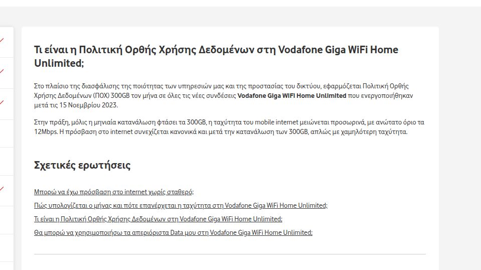 Καθώς πριν από λίγη ώρα γράφαμε το άρθρο για το τέλος του απεριόριστου ίντερνετ χωρίς σταθερό της Vodafone και συγκεκριμένα το Vodafone Giga Wifi Home διαπιστώσαμε ότι στον επίσημο τιμοκατάλογο της Vodafone αναφέρεται η δυνατότητα χρήσης επιπρόσθετων πακέτων προκειμένου να μπορέσεις να ξεπεράσεις το όριο των 300 GB που είχαν.