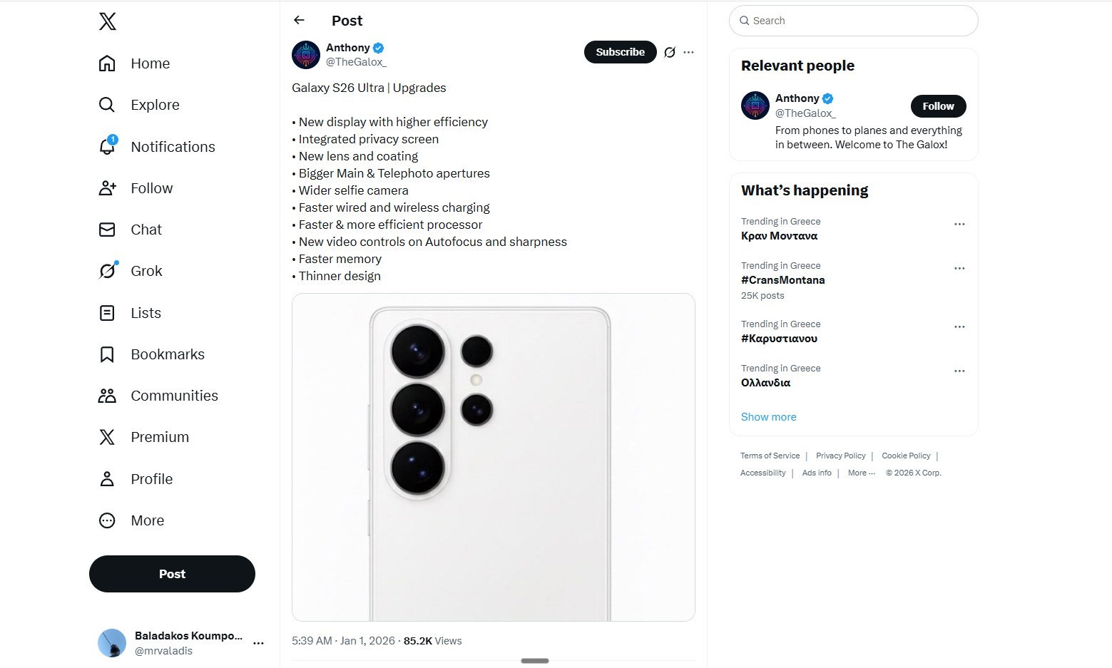 Σε κάθε περίπτωση όμως, οι πληροφορίες έχουν ήδη ξεκινήσει να διαρρέουν για την επόμενη μεγάλη αναβάθμιση της Samsung, το Galaxy S26 Ultra. Η πρόταση της Samsung είναι ένα από τα πρώτα flagship μοντέλα που κάνουν το ντεμπούτο τους στην αρχή της χρονιάς. Επομένως, δε θα ήταν τραβηγμένο να πούμε ότι οι αλλαγές, τα χαρακτηριστικά και το design που θα δούμε στο Samsung Galaxy S26 Ultra θα επηρεάσουν και άλλα Android smartphones, ενώ φυσικά και οι συγκρίσεις με αυτό θα είναι πολλές.