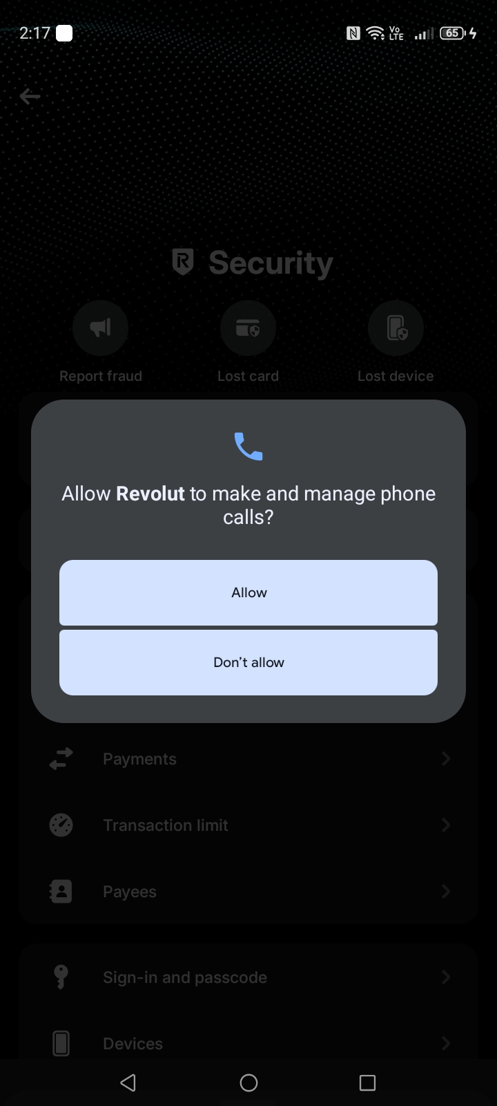 Το μόνο που έχει να κάνει ο χρήστης είναι να πατήσει στο Allow Call Detection, ώστε η Revolut να μπορεί να ανιχνεύσει αν πρόκειται για απάτη.