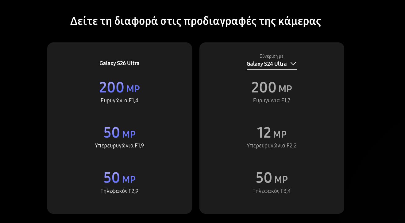 Είναι τα ίδια τηλέφωνα με αυτά που μας παρουσίασε και πέρυσι και πρόπερσι. Τι πιο χαρακτηριστικό παράδειγμα από το συγκριτικό που έχει ανεβάσει η Samsung Ελλάς στη χώρα μας. Δεν τολμάει καν να προβεί σε σύγκριση με το Samsung Galaxy S25 Ultra. Αντίθετα, το συγκρίνει με το Samsung Galaxy S24 Ultra. Μια γενιά πίσω δηλαδή.