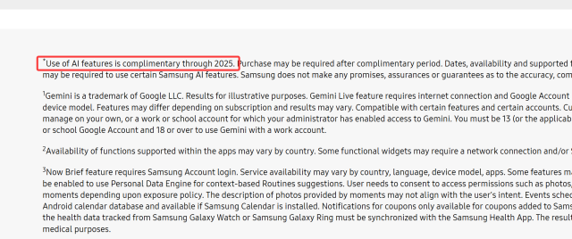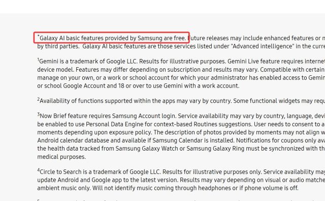 Δεν γνωρίζουμε πότε ακριβώς έγινε η αλλαγή, αλλά αξίζει να σημειωθεί ότι προηγουμένως η σελίδα ανέφερε το εξής: Galaxy AI basic features provided by Samsung are free.
