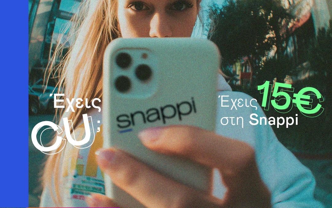 Μπες στο My CU app, στο CU Around, βρες το Snappi offer και πάτησε “Το θέλω” για να πάρεις τον μοναδικό σου κωδικό ή στείλε cusnappi στο 54646.2. Μπες στη CU List