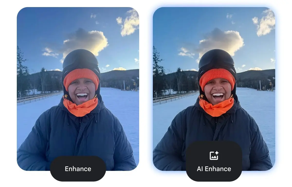 Η νέα λειτουργία AI Enhance χρησιμοποιεί τεχνητή νοημοσύνη για να αποκαταστήσει τα φωτεινά σημεία μιας φωτογραφίας, όπως επίσης και τις σκιές, χωρίς να κάνει την φωτογραφία επίπεδη. Ταυτόχρονα, διορθώνει τα προβλήματα που έχουν προκληθεί από κακό φωτισμό ή από flares του φακού, ενώ ενισχύει τα χρώματα και την αντίθεση στις φωτογραφίες. Βέβαια, δεν είναι μόνο η Google που κάνει κάτι τέτοιο στην εφαρμογή της, αλλά παρόμοιες λειτουργίες έχουμε και σε άλλες εφαρμογές, όπως επίσης και στους editors των κατασκευαστών. Όμως, είναι καλό να έχουμε επιλογές, πόσο μάλλον όταν είναι από τις καλές.