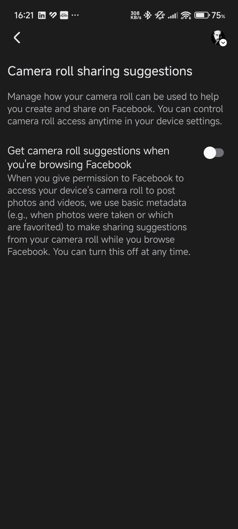 Ευτυχώς, υπάρχει τρόπος να κλείσουμε την νέα λειτουργία του Facebook, ώστε τουλάχιστον θεωρητικά, να μη μπορεί να ανεβάσει όλες μας τις φωτογραφίες. Η ρυθμίσεις για τη λειτουργία αυτή βρίσκονται στις ενότητα προτιμήσεις, στις ρυθμίσεις του Facebook, στην εφαρμογή του κινητού μας. Εκεί θα βρούμε τη σελίδα “Προτάσεις κοινής χρήσης φωτογραφικού υλικού”, με δύο επιλογές. Η πρώτη επιτρέπει στο Facebook να προτείνει φωτογραφίες και βίντεο από το άλμπουμ της κάμεράς μας, ενώ η δεύτερη επιλογή μας δίνει τη δυνατότητα να απενεργοποιήσουμε την υπηρεσία cloud, που θεωρητικά επιτρέπει στην Meta να πάρει τις φωτογραφίες μας.