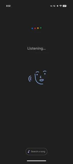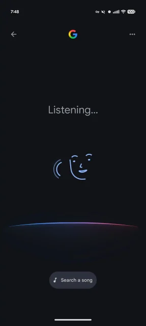 Στη βασική οθόνη του voice search, η Google διατηρεί το μήνυμα “Listening…”, ενώ παραμένει και η γνωστή εικονογράφηση προσώπου που υπήρχε και πριν.