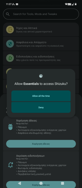 - Δουλεύει, το καταφέραμε, τα screenshots το αποδεικνύουν, απλά θέλει να καταλάβεις πώς λειτουργεί το σύστημα Shizuku τόσο με το Canda που είχαμε γράψει σε προηγούμενο άρθρο όσο και με το Essentials, πραγματικά μια πολύ καλή εφαρμογή.