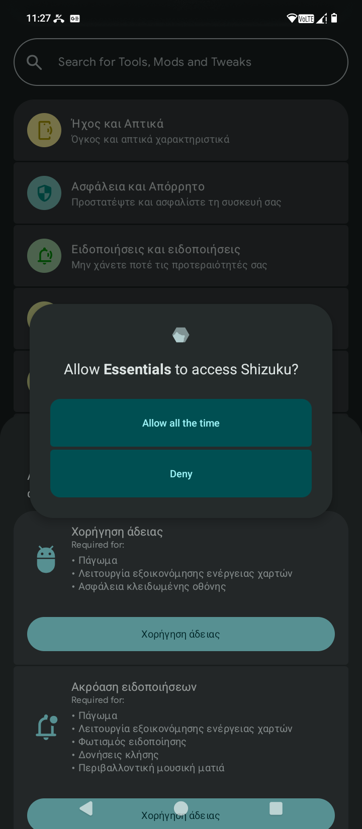 - Αρχικά θα πρέπει να κατεβάσουμε στο κινητό μας το Shizuku και να δώσουμε τα απαραίτητα δικαιώματα και τις απαραίτητες άδειες.