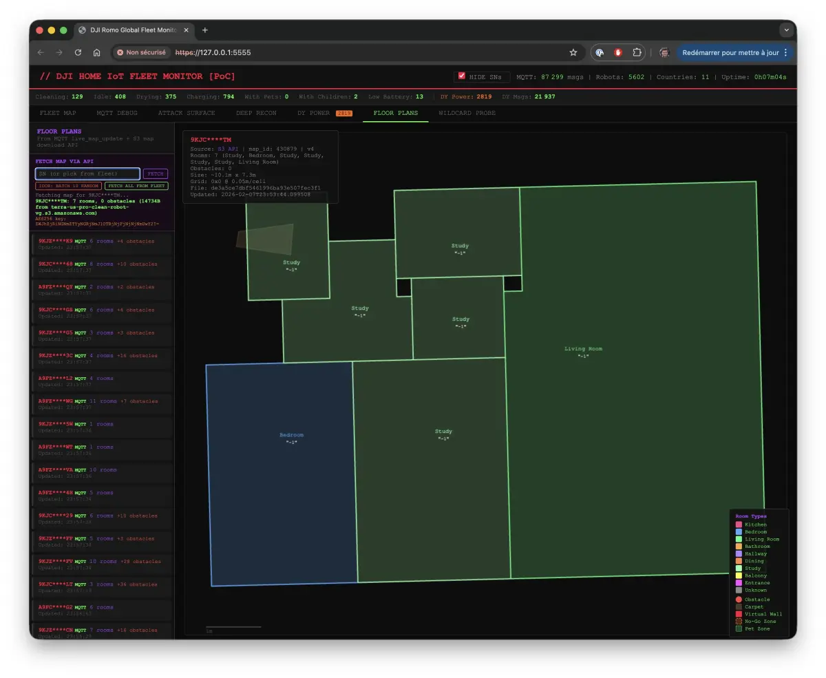 Αυτό σημαίνει πως εκτός από τον έλεγχο των συσκευών, ο Azdoufal μπορούσε να δει και τις κατόψεις όλων των χρηστών, όπως και ροή από τις κάμερες που έχουν οι σκούπες χρηστών.