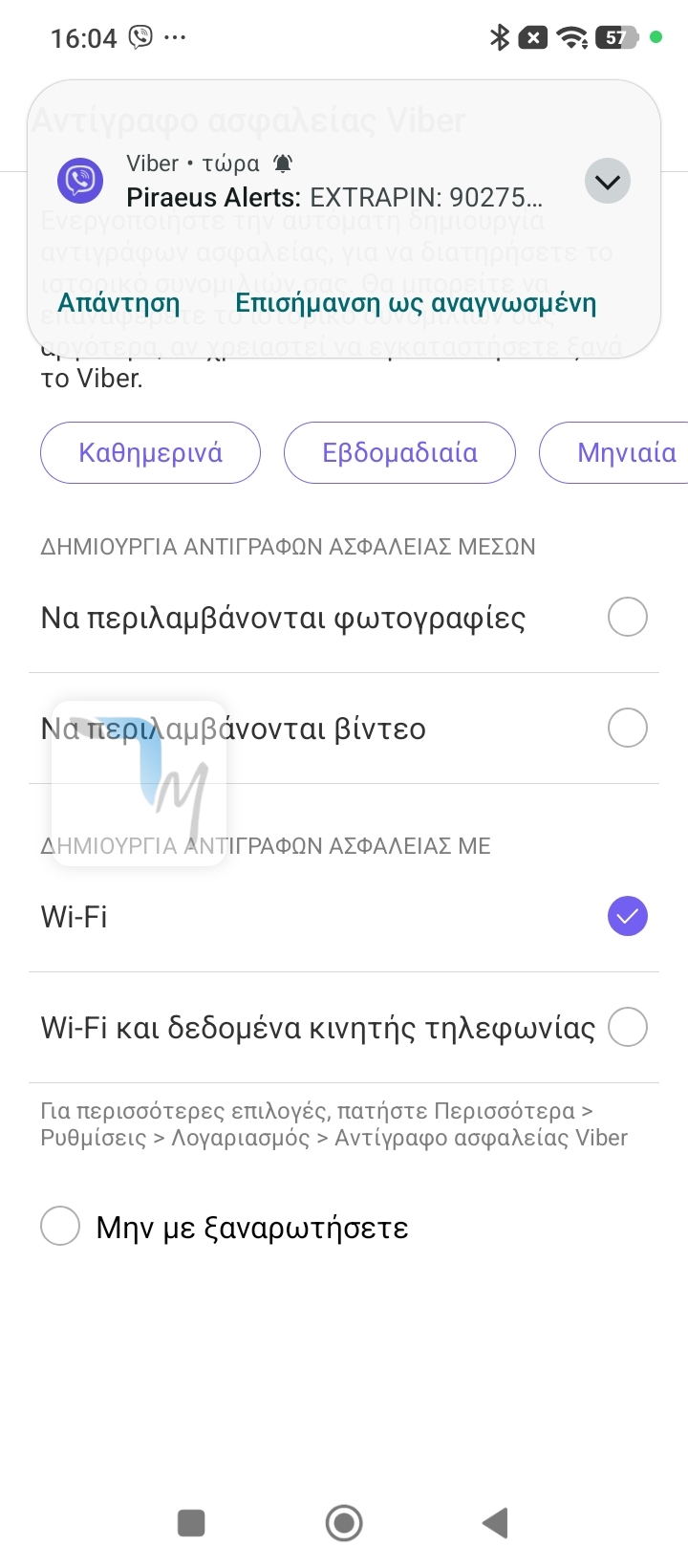 Ωστόσο, ήθελα να μου στείλει extra PIN για να το επιβεβαιώσουμε ακόμη μια φορά σε κινητό που έχουμε βγάλει τη SIM και υπάρχει μέσα το Viber.