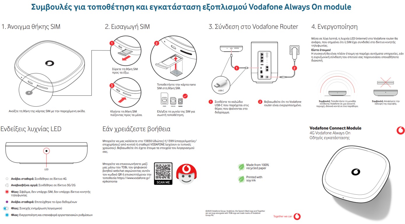 Στην εικόνα που έχουμε επισυνάψει από κάτω, ακολουθεί ο αναλυτικός τρόπος για την εγκατάσταση του εξοπλισμού και την ενεργοποίηση του Vodafone Always On.