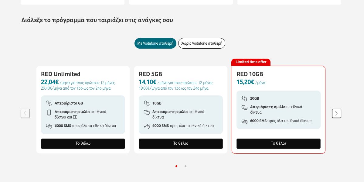 H ειδική προσφορά στο πρόγραμμα RED 10GB για συνδρομητές με Vodafone σταθερή ισχύει έως και 30/04.