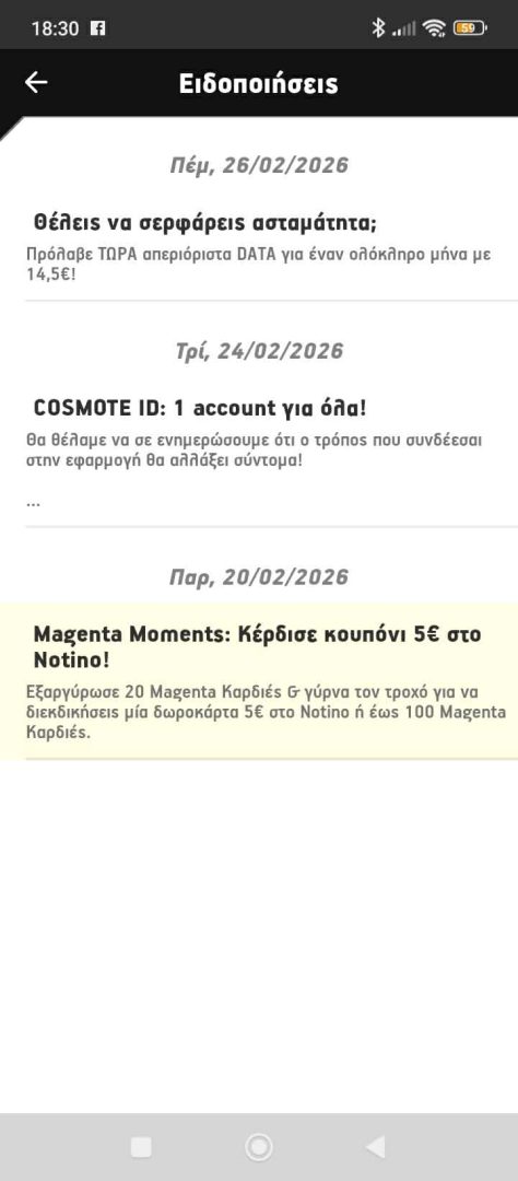 Θα μπορέσεις, δηλαδή, να εκμεταλλευτείς το trial του ενός μηνός που δίνει η Cosmote σε νέους χρήστες Cosmote Neo, που δεν το έχουν δοκιμάσει παλαιότερα. Αν και αυτό μπορεί να γίνει μόνο μία φορά ανά ΑΦΜ.